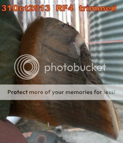 There should be some sole building up now too. I have got the P2-P3 joint pretty much level with the coronet band now which is where it is supposed to be. However, he does leave the foot on the ground until the last gasp of breakover at slow walk or graze speed which is supposed to indicate a ground parallel CB so maybe there is still more wall height to take away particularly on the LF.