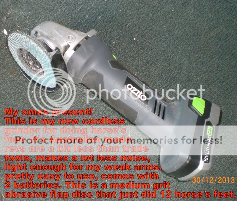 The grinder is such a time saver & energy saver too, especially since both my shoulders have given up the ghost recently & rasping is just not something I can do anymore. Both my arms have become weakened with no shoulder strength. There is no way I could have done all my horse's feet yesterday if I had to do it manually. I wouldn't even have achieved one horse done, let alone all 3 horses done.