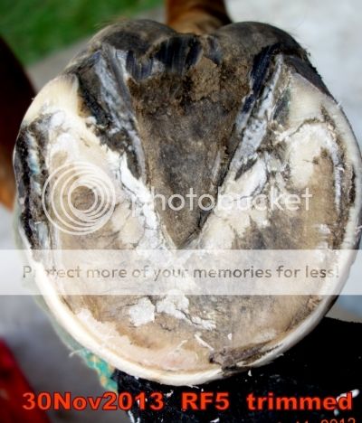 In 4 days time I will take the heels down on the fronts a little bit more. Taking down both heels & toes at the same seems to make him very sore. There seems to be some good heel platform developing now too.