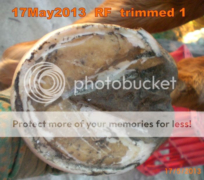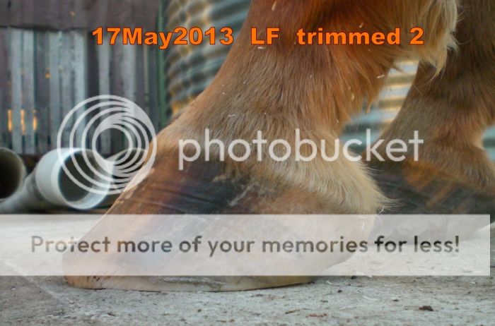 Since I last posted I have been doing mini trims, just one thing each time. About 2wks after last full trim I redid the toe bevel, then a week ago I made the groove around the toe behind the wall. Now today a full trim again. That seems to be a way of not getting him sore after a trim. With winter coming on his feet have slowed down growth somewhat. Which is ok.